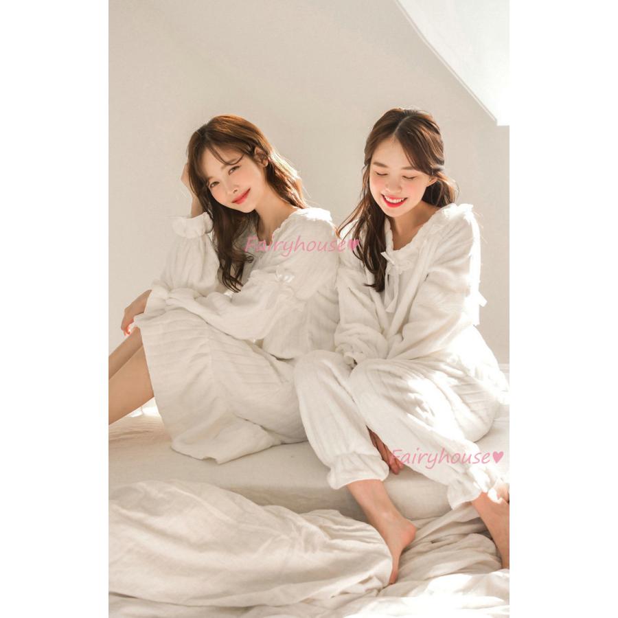 パジャマ ルームウェア レディース 冬 もこもこ パジャマ 長袖 フランネルパジャマ ルームウェア 上下セット ワンピース 白 フレア 厚手 韓国風 部屋着 可愛い Y2813 Fairyhouse 通販 Yahoo ショッピング